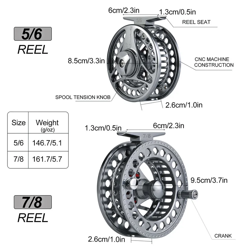 The Sougayilang high-speed fly fishing reel is engineered for precision, strength, and smooth performance. Made with a CNC-machined aluminum alloy body and spool, it offers lightweight durability for long-term use. Designed for 5/6 and 7/8 fly lines, it delivers fast retrieval with a high-speed gear ratio. The smooth drag system provides reliable control when battling fish, ensuring effortless performance on every cast. Its corrosion-resistant construction makes it ideal for freshwater fishing. The ergonomic handle offers comfort and control during extended sessions. Compact yet powerful, this reel enhances casting accuracy and efficiency. Perfect for trout, bass, and other game fish, it suits both beginners and experienced anglers. Upgrade your fly fishing gear with a reel built for speed, strength, and durability.